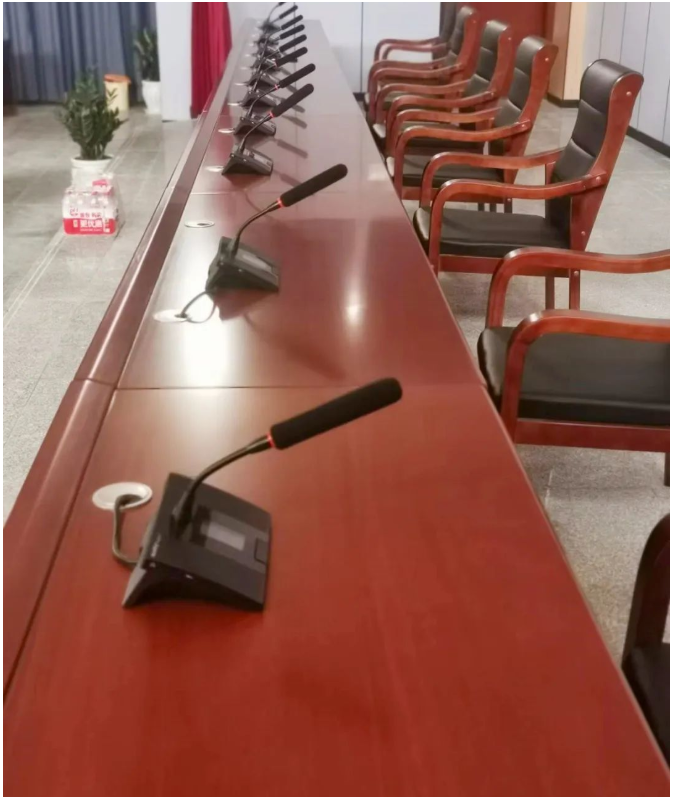 考慮會議發言需要,增加了一套MT系列數字會議系統,由MT2000S會議主機、MT880VC主席單元和8支MT880VD客席單元組成,發言單元界面簡潔、語言高清晰還原,讓會議溝通無阻。