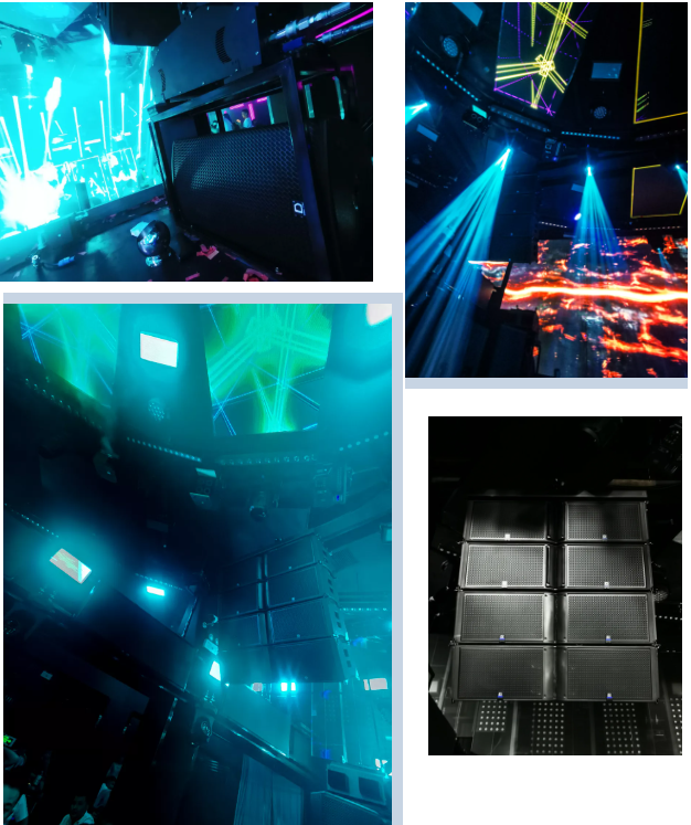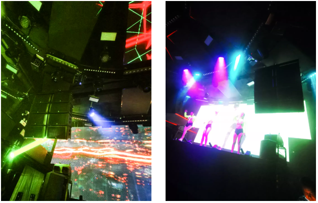EV娛樂旗艦系列雙12寸三分頻線性陣列音箱搭配FX-2單12寸內置兩分頻音箱組成舞臺及中央?yún)^(qū)域擴聲。FX-4雙12寸內置兩分頻音箱確保后場直達聲充足且整個場地的聲場均勻。左右卡座實施點聲源補聲方案,由FX-3單15寸內置兩分頻音箱保證近場和遠場保持自然流暢的統(tǒng)一覆蓋。