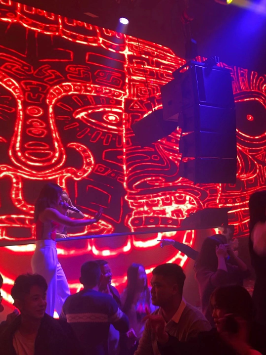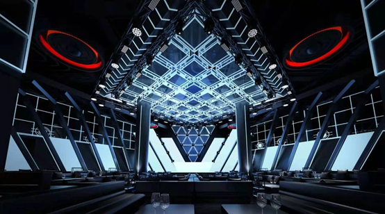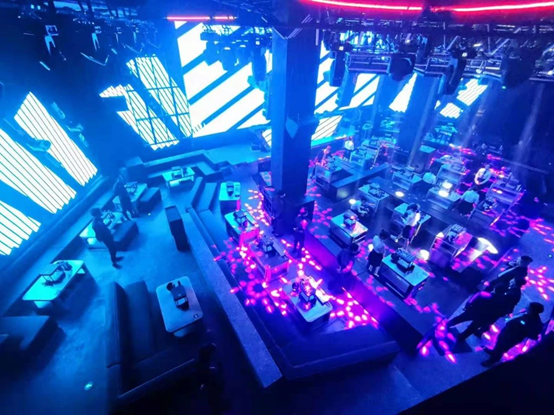 “BGM CLUB占地面積1200多平方米。設有VVIP區域,多功能互動過道,直播專區,振動式卡座區域,9米高空,全場三維立體冰屏,180度開放式吧臺,二層360度全開放式專屬卡座縱覽全場。經過我們精密設計的流暢線條設置,減小不同區域相互之間的影響,為的是提高客戶的體驗感和私密性。沙發,吧臺和桌子,都藏著我們獨特的擺放理念。最終,我們打造出高端舒適,放松愜意的氛圍。”