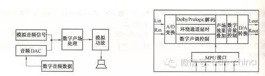 圖2 數(shù)字化功放電路的組成框圖 圖3 數(shù)字聲場(chǎng)處理模塊原理框圖