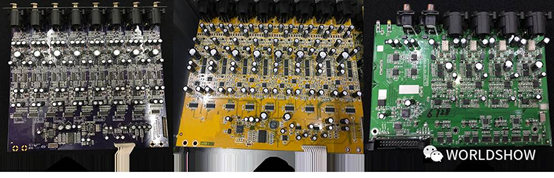 通過上述測試對比,我們可以基本判斷,在各項(xiàng)性能上,C的指標(biāo)最高,A其次,B型號最低。這些指標(biāo)對用戶的意義是什么呢?——是音質(zhì)的差別,而這背后是電路設(shè)計(jì)和電路元器件的選用上差別。對于數(shù)字調(diào)音臺來說,話放的電路設(shè)計(jì)和元器件選用,A/D、D/A轉(zhuǎn)換芯片,這些很大程度上決定了其性能。入門級的調(diào)音臺為了實(shí)現(xiàn)大眾化的價格,往往不得不在音質(zhì)和成本之間折中。我們分別將手頭的3個型號的調(diào)音臺的進(jìn)行拆機(jī),分別看看其電路設(shè)計(jì)和元器件用料。