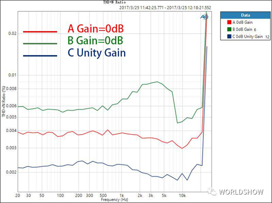 圖3a. 三款調(diào)音臺的THD+N Ratio測試圖