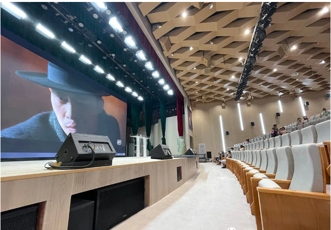 學(xué)校的多功能廳為本次的項(xiàng)目場(chǎng)地。多功能廳可容納600多名學(xué)生,配備升降舞臺(tái)和專業(yè)的音響設(shè)備,主要用于會(huì)議、學(xué)術(shù)報(bào)告、文藝戲劇類節(jié)目演出,同時(shí)要兼顧音樂演奏、歌舞的演出要求,在功能上將其定位為一座多功能劇場(chǎng)。