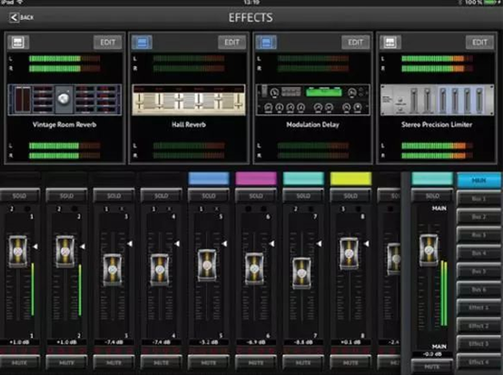 MR18內(nèi)置了和M32一樣的效果器處理引擎。效果器機架提供了4對立體聲處理通道,可選擇包括延時、混響、動態(tài)處理和GEQ等,并且不需要增加任何額外的硬件。