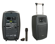 產品特點:SAFARI 3000+WM-1S+USBR-1 10"內置3路立體聲混音的便攜式多功能音箱 10"低音單元,1"純鈦高音單元 頻率響應(+/- 3dB):50Hz - 18kHz 內置雙D類功放,RMS /峰值功率:160W/320W 靈敏度 1w@m:89dB 最大聲壓級:112dB 內建三聲道混音器 輸入端口:2組復合式輸入端子(XLR及?TRS),RCA及迷你立體聲 輸出端口:RCA,Speakon(帶功率輸出,可連接兩支8Ω被動式音箱) 帶旋鈕式EQ及回音殘響控制 帶人聲優先控制開關 帶四段LED電源指示燈 具有自動掃頻技術的無線麥克風系統 內建麥克風存放槽 可伸縮拉桿及滾輪 電池具備7-10小時的操作時間,有電池保護開關 標配帶一只無線話筒及接收器(WM-1S) 選購配件:無線麥克風,CD/USB錄播機,USBR-1錄音機,SAFARI 3000DC防風罩 尺寸:553 x 350 x 333 mm 重量:16kg