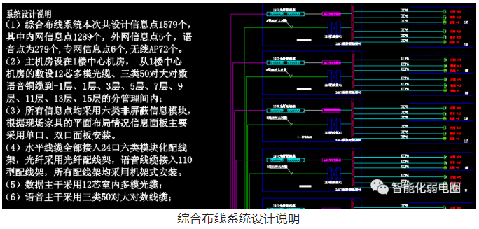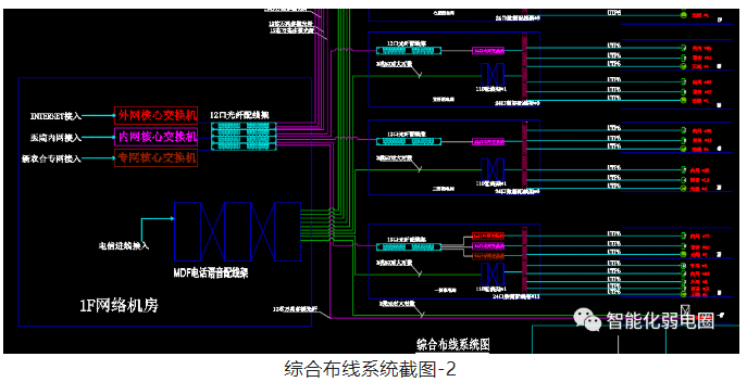 綜合布線是智能化弱電系統的基礎,包含工作區子系統、水平子系統、管理間子系統、垂直干線子系統、設備間子系統、建筑群子系統。