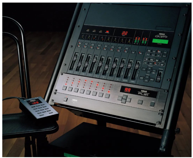 早在雅馬哈的合成器DX7和多效果器SPX90等產品處于廣受歡迎的時候,雅馬哈也同時忙于研發最初用于雙排鍵電子琴Electone的DSP LSI(大規模集成電路),但它也顯現了用于數字混音領域的潛力。該LSI因此成為雅馬哈第一款數字調音臺DMP7的基石。DMP7這款數字調音臺的主要目標用戶是在舞臺上使用DX7合成器或音源的鍵盤演奏者,但它還擁有兩個內置麥克風輸入以及可選配的MLA7話放輸入擴展功能,因此它也被用于一些現場混音和錄音場合。作為雅馬哈首款數字調音臺,它已經擁有先進的場景記憶功能了,可以立刻調用許多不同的混音設置,數字調音臺所特有的電動推子功能也已經搭載,可以隨每次場景調用而移動。