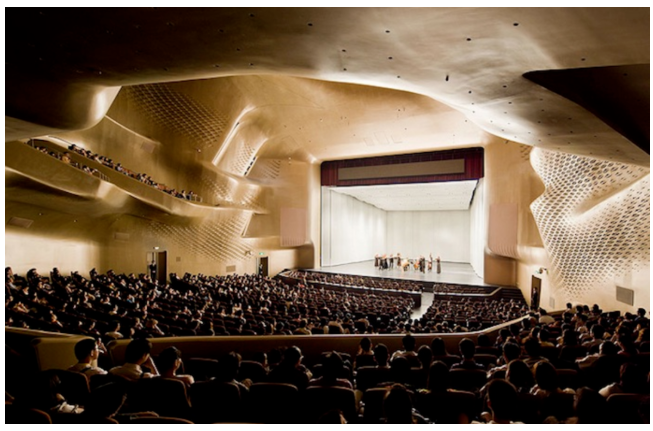 此外,廣州大劇院的建筑設(shè)計(jì)也獨(dú)樹(shù)一幟,它通過(guò)不對(duì)稱的騎樓和不規(guī)則的內(nèi)壁形狀讓聲場(chǎng)設(shè)計(jì)更為考究。