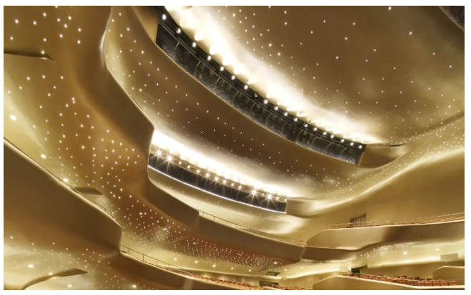 梅溪湖大劇院也使用了GRG,這種材料具有良好的可塑性和耐用性,也有利于實(shí)現(xiàn)空間界面的流暢銜接和良好的聲學(xué)效果。