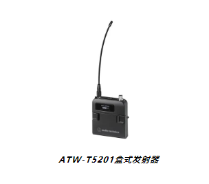 小型的ATW-T5201盒式發射器,配備了鐵三角的cH型螺絲固定式4針連接器,可連接到鐵三角的cH式領夾式或頭戴式話筒或連接線。