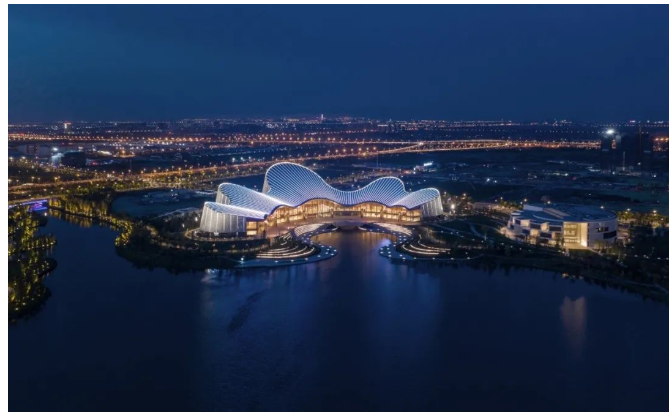 南通大劇院位于江蘇省南通市,是 2021 年新建的標志性地標。該劇院位于南通市中央創新區的核心區域,比鄰紫瑯湖。