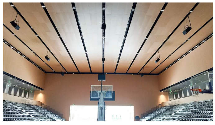 其中一層多功能綜合館,面積超過1200平方米,包含2000個坐席和3個籃球全場,可以承辦中小型賽事和活動。在擴聲系統的選擇上,面臨著場館層面積大,層高深,混響時間長,設備選擇需要滿足大聲壓級、高靈敏度、適合長距離投射和體積輕巧能減少高空懸掛的負荷,確保滿足極佳的指向性控制,保證音色的一致性,具備優異的安全性和穩定性。