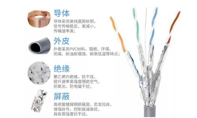 七類線線芯使用的是直徑近 0.58mm 優質無氧銅為傳輸導體,比6類線稍粗一點點,選用化學發泡絕緣,極大提高了單根導體傳輸才能。