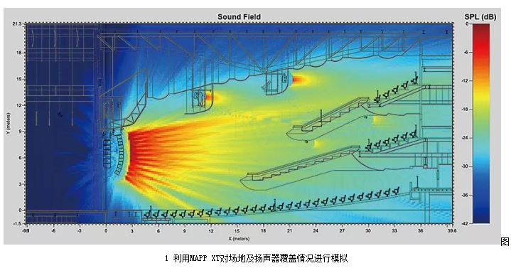 當(dāng)獲得足夠的場地信息之后,需要利用揚(yáng)聲器廠家提供的模擬軟件(或者通過Ease Focus這種基于GLL文件的通用設(shè)計(jì)軟件)進(jìn)行建模,這些軟件可在可視化的條件下,實(shí)時(shí)調(diào)整并計(jì)算不同設(shè)計(jì)方案的覆蓋均勻度以及聲壓級(jí)分布,較為復(fù)雜的模擬軟件(如Ease)甚至可以將反射和墻面材質(zhì)的吸聲特性都考慮在內(nèi),實(shí)現(xiàn)對(duì)反射情況的模擬(見圖1)。系統(tǒng)建模和預(yù)測(cè)的重要作用在于讓系統(tǒng)工程師在裝臺(tái)開始之前就能夠做好全部的計(jì)劃和準(zhǔn)備工作,進(jìn)而起到減少正式施工時(shí)長并提高工作效率的作用。