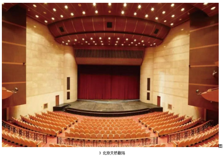 標(biāo)準(zhǔn)劇場中,中置揚(yáng)聲器組的安裝通常分為暗裝和明裝兩種。暗裝一般是安裝在舞臺(tái)鏡框上沿預(yù)留的聲橋當(dāng)中,如北京天橋劇場(圖3)。明裝則是吊掛在舞臺(tái)燈桿或預(yù)留的吊點(diǎn)上,如北京天橋藝術(shù)中心大劇場(圖4)。暗裝對(duì)觀眾的視覺影響最小,如果劇場擴(kuò)聲系統(tǒng)設(shè)計(jì)合理,建筑聲學(xué)指標(biāo)達(dá)標(biāo),且在鏡框高度不是很高的情況下,劇場中置聲道暗裝是最好的安裝方式。但是國內(nèi)劇場的實(shí)際情況并不樂觀,且不同演出的系統(tǒng)工程師和音響設(shè)計(jì)師都有各自的設(shè)計(jì)和考量,暗裝中置聲道位置又基本不可調(diào)整,所以很多劇場中暗裝的中置聲道使用率很低。明裝的中置聲道更便于安裝、拆卸以及調(diào)整,更加適合流動(dòng)性強(qiáng)的演出,因此,越來越多的現(xiàn)代化劇場采用這種安裝方式。