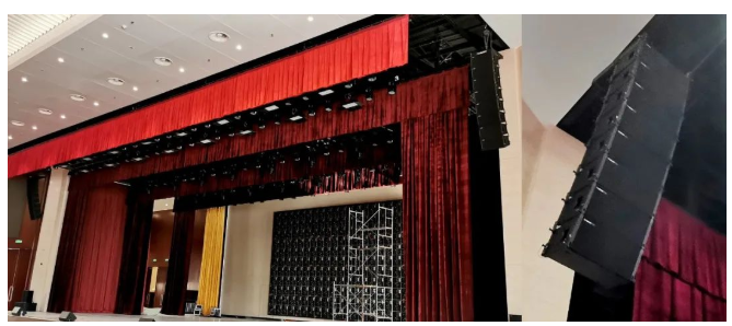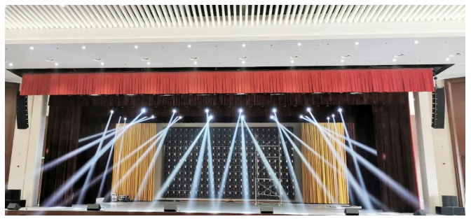 小報告廳左右主擴采用德國TWAUDiOT20N點聲源 2只,搭配4只緊湊型超低B17i,拉聲像則由2只T20i點聲源負責,后場補聲和舞臺返送則分別由左右鏡像對稱的全頻揚聲器M12iM12擔任,整個系統依然由RAM AudioZETTA系列功放進行驅動。